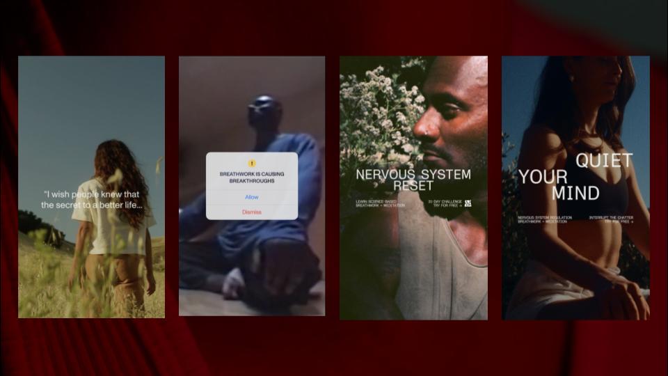 Creative Production: A diverse mix of high-production videos, user-generated content, and static carousels showcased Open’s instructors and mindfulness sessions. Ads were crafted to appeal to specific user motivations, blending educational content, testimonials, and in-app visuals.