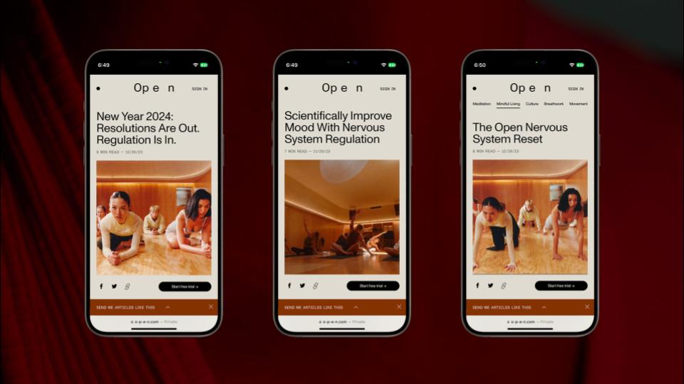 Content Development: SEO-focused pillar pages were created for terms like "Breathwork," "Meditation," "Yoga," and "Sound," driving traffic from users searching for these specific topics and positioning Open as an authority on each topic.